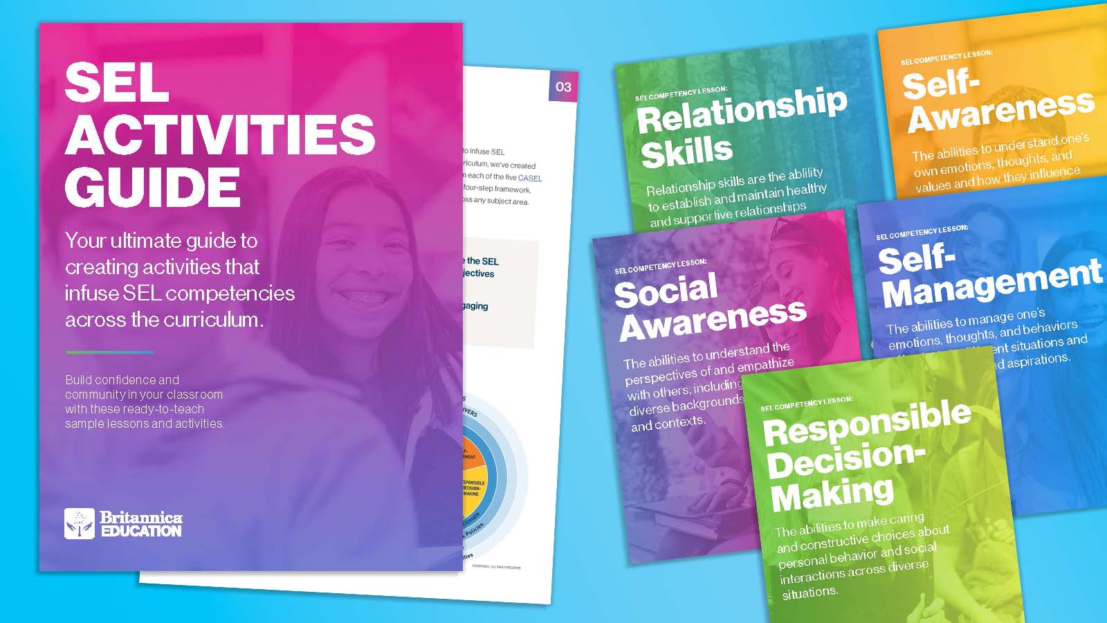 The activities in Britannica Education’s SEL Activities Guide make it easy to teach curriculum content along with SEL in a way that can save time, help students make better connections, and keep instruction flowing. Learn about relationship building through types of media in language arts or examine the legacy of a figure in history while discussing self-awareness. The guide provides a four-step framework to help make curriculum connections that will ultimately strengthen resilience and community in your classroom.