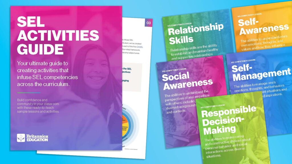 The activities in Britannica Education’s SEL Activities Guide make it easy to teach curriculum content along with SEL in a way that can save time, help students make better connections, and keep instruction flowing. Learn about relationship building through types of media in language arts or examine the legacy of a figure in history while discussing self-awareness. The guide provides a four-step framework to help make curriculum connections that will ultimately strengthen resilience and community in your classroom.